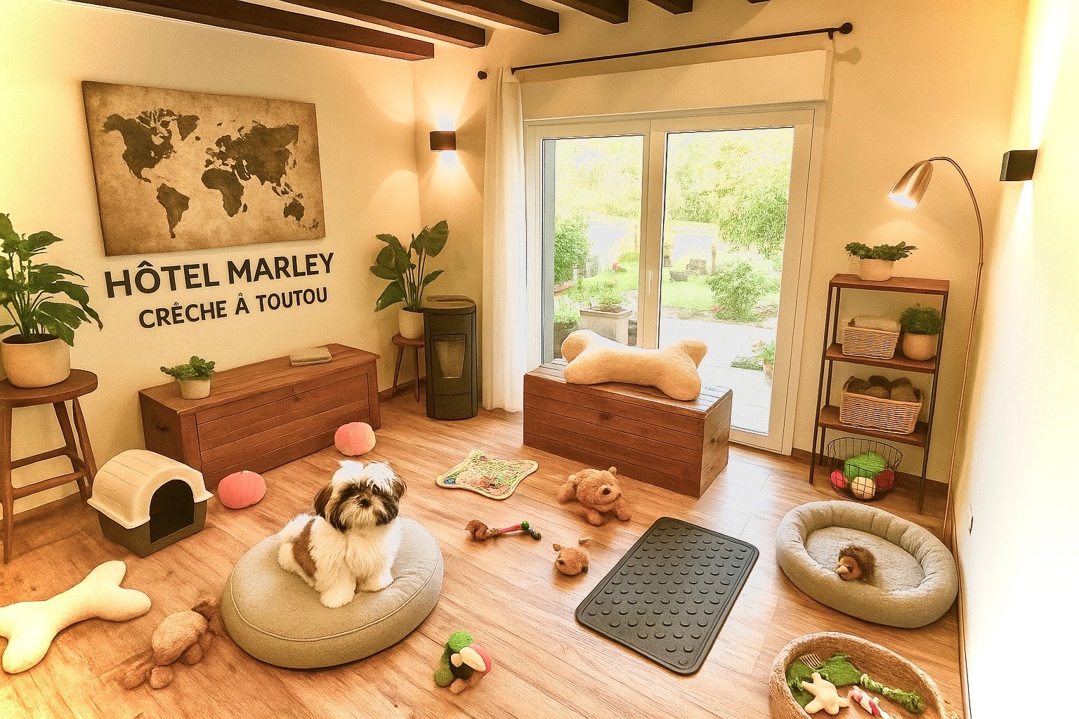 Situé en campagne, l'hôtel Marley offre à votre animal de compagnie un environnement idéal alliant jeux et détente.